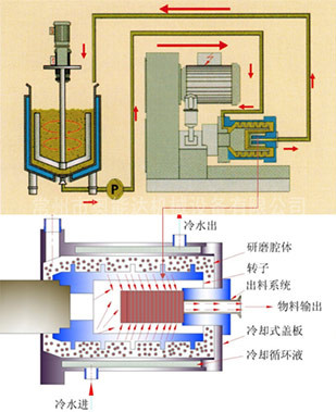 研磨能量集中,所有物料都是在研磨區內進行研磨,所得物料粒徑分布窄;攪拌桶和分散機內漿料大流量循環,所以漿料能在短時間能循環數十遍,大批量處理物料。